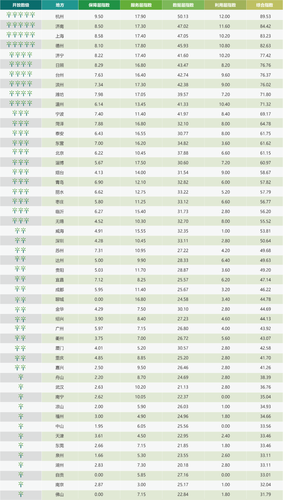 中国开放数林指数城市综合排名(前50名)